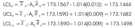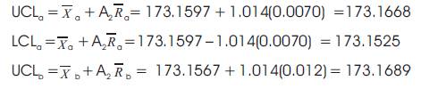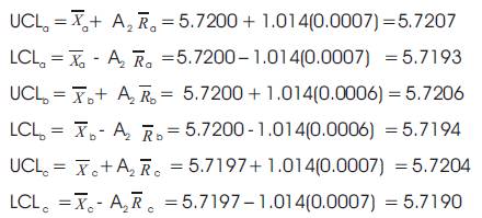 charts of A & B indicates the process average is not within the limits and Figure 5 (c & d) represents the R Charts of A& B which indicates the process dispersion or variability is within the control limits.