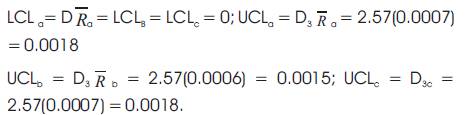 charts of C & A, B, C indicates the process average is not within the limits and Figure 6 (c & d) represents the R Charts of C & A, B, C which indicates the process dispersion or variability is within the control limits.