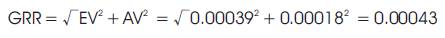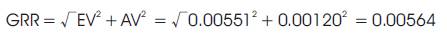 GRR or Gage R&R, (Gauge Repeatability and Reproducibility) is the combined estimate of measurement system's repeatability and reproducibility. It is the variance equal to the sum of within system and between-systems variances [8].