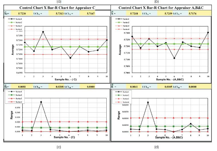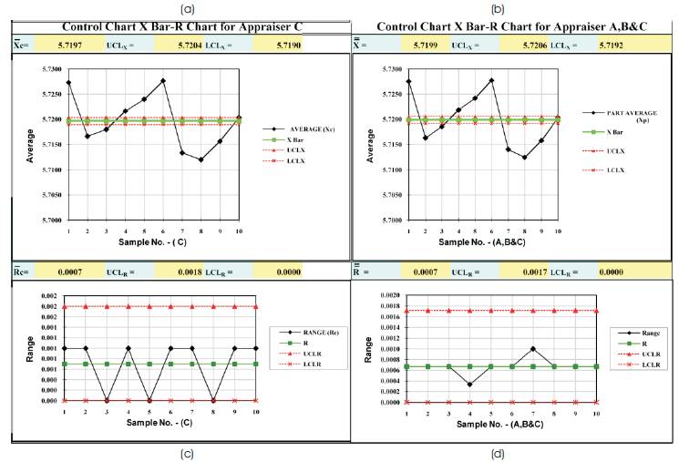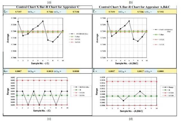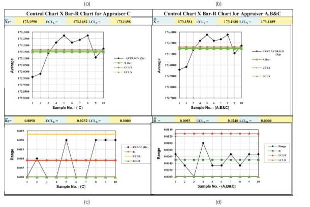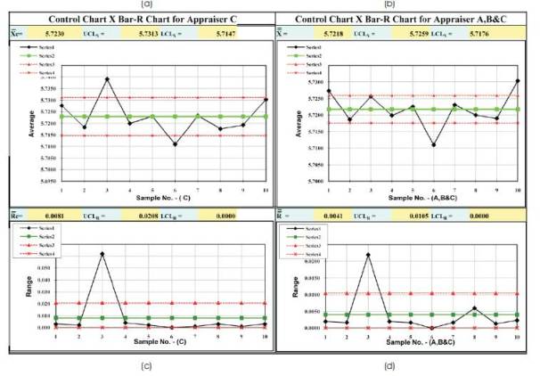 Figure 2 shows the combined control charts of appraiser for C & A, B, C. Figure 2 (a & b),