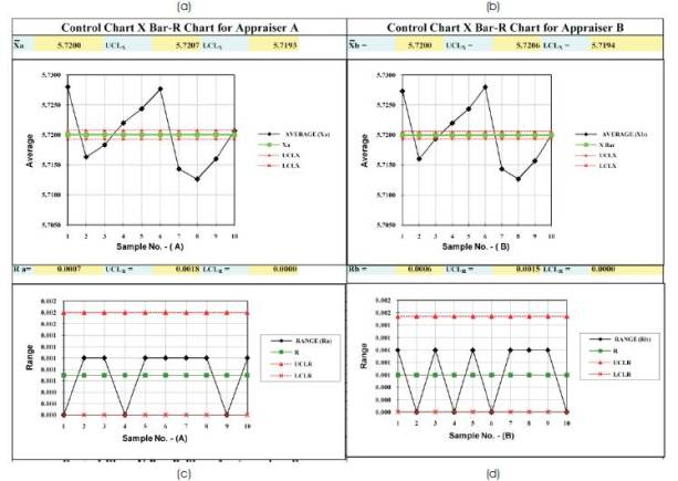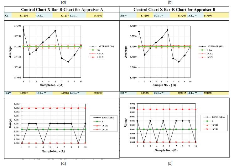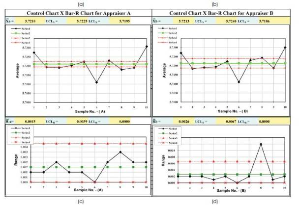 Figure 1 shows the control chart of appraises for A & B. Figure 1 (a, b),