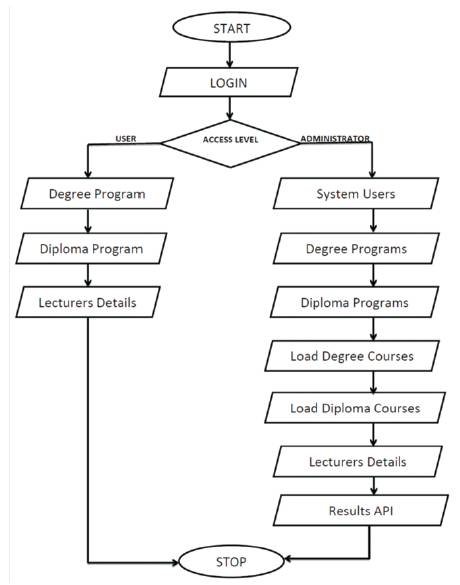 This system is software that is used to keep the records of registration and submissions done by students, their results and the information of the lecturers in the department of Computer Science at the University for Development Studies (UDS Navrongo Campus). Figure 1 shows the flowchart of the project. This software is designed to connect to a SQL server. This software is basically programmed to:
