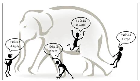Figure 1. The blind men and the giant elephant: the localized (limited) view of each blind man leads to a biased conclusion