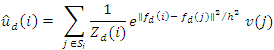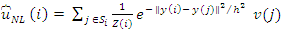 Starting from a discrete image u, a noisy observation of u at pixel i is defined as v(i)=u(i) +n(I) Let Ni, denote a r x r, square neighborhood centered around pixel i. Also, let y(I), denote the vector whose elements are the gray level values of at pixels inNi, Finally, Si is a square search-window centered around pixel i . Then, the NLM algorithm defines an estimator for ui, as