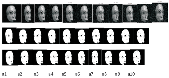 If the thresholded object and corresponding gold standard image Gj (associated ground truth image) are exactly identical then the measure is 0 and the measure 1 represents they are totally disjoint, but the higher measure indicates more similarity. This demonstrates the superiority of the proposed method. The proposed method confirms the qualitative improvement over the traditional methods.