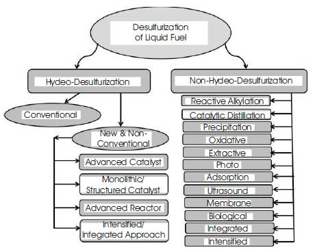 Figure 1. Various Methods for Desulfurization of Liquid Fuels