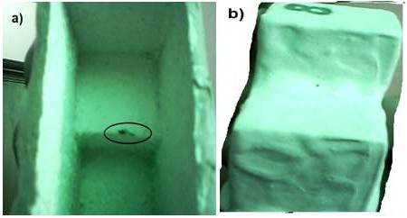 Figure 18. a) i) Bending of shell, ii) Crack on internal surface, b) External surface finish