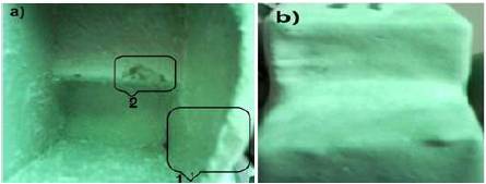 Figure 17. a) 1) Bending of Shell, 2) Crack on Internal Surface, b) External Surface Finish