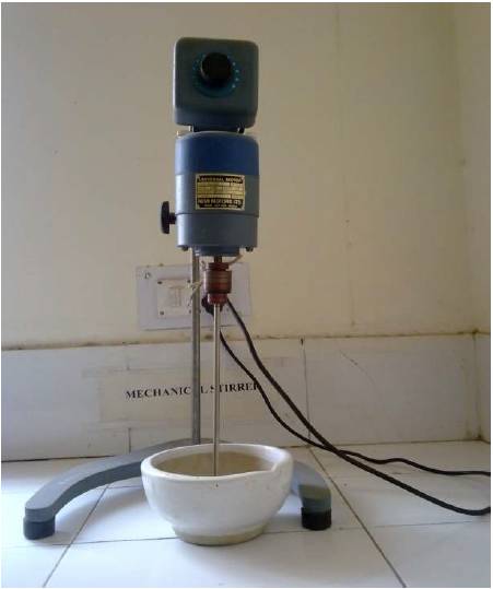 Slurry of different combination of coating materials is prepared with the help of mechanical stirrer which is shown in Figure 2. Mechanical stirrer consists an electric motor of 0.5 HP capacity (input voltage 230-240 V, input frequency 50-60 Hz and speed range 800-4000 rpm). One end of the spindle has been connected with motor (Figure 3) and other end connected with blades. Combinations of different coating materials have been rotated at 1400 rpm for 10 minutes.