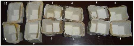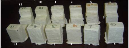 After the preparation of slurry, pattern is dipped into the primary slurry. The process is repeated two times, depending upon the thickness of coating. After being dry, secondary coating takes place on the pattern. Coarse powder formed mullite is also used as stucco material for support to secondary coat. The thickness of coating (primary and secondary) is found to be 3 to 4 mm for all samples. The coated patterns are shown in Figure 4.