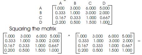 In this step, the eigen vectors are calculated by squaring the matrix and then adding each row as describe below .