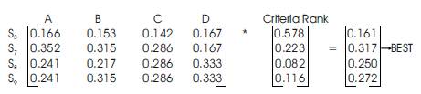 In this step, the best alternative is found by multiplying the criteria alternative matrix and criteria rank.