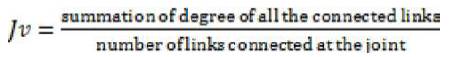 The shortest path distance matrix [D] does not provide any information about the types of links existing in a KC. Therefore, this information is included in the [WD] matrix in the form of relative importance of the degree of ith link and jth link and vice versa. The relative weight of the degree of the links (wij) is defined as the ratio between degree of ith link and jth link and given as