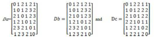 The path between two links i and j is an alternating sequence of links and joints starting from link i and terminating at link j. The sum of the joints in the path is called path length or path distance, the shortest of all the paths is called shortest path distance. The shortest path distance matrix is represented as square symmetric matrix of size n x n, where n is the number of links in a KC.