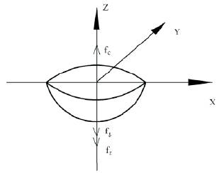 The strength model of a molten drop (Figure 15), can be considered as a part of a sphere, where fc is inertia force aroused by ultrasonic vibrating and fg is gravity, which is very small compared to fc that can be neglected and fz is surface tension of liquid drops.
