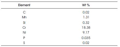 Table 1. Chemical composition of AISI 304 stainless steel