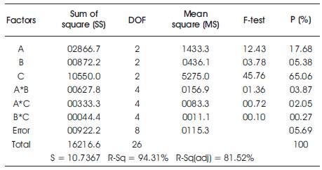 Table 7. ANOVA for surface roughness