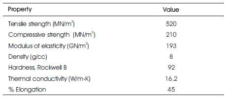 Table 2. Physical and mechanical properties of AISI 304 stainless steel