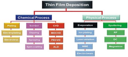 The thin film processing techniques (Correa et al., 1998) are broadly categorized into physical and chemical vapour deposition systems as shown in Figure 3.