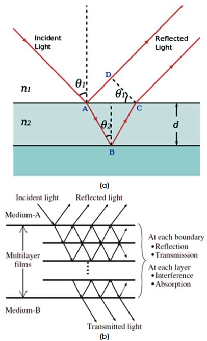 Figure 5. (a) Constructive Interference (b) Optical Phenomena of Multilayer Thin Films (Hecht, 2002)