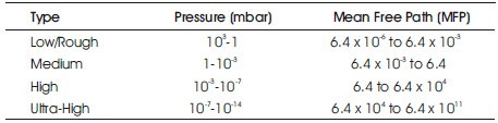Most thin film deposition and processing methods employed to exemplify and quantify the properties of the films require a vacuum or some port of decreased-pressure environment. A vacuum can be stated as volume encompassing less gaseous molecules compared to surrounding environment when both containing similar matter at same temperature. It offers a long Mean Free Path (MFP) for collision involving vaporization basis and the substrate. Empirical formula to calculate mean free path is shown in equation (1) (Petrov, Barna, Hultman, & Greene, 2003).