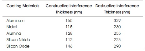 Table 4. Thickness for Constructive and Destructive Interference of Coating Materials (Bachman et al., 1999)