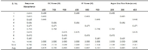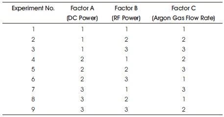 Table 6. Deposition Conditions based on L Orthogonal Array