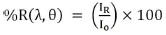 The ratios of intensities are called, transmissivity (IT/I0), absorptivity (IA/I0), and reflectivity (IR/I0). In order to evaluate the optical performance of an candidate reflector materials for solar thermal applications, the two methods of optical testing have to be done. First, the spectral hemispherical reflectance R(λ, θ) measured at the wavelength range of 250< λ <2500