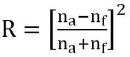 Reflection as defined through Fresnel's equation, which provides the amount of reflection that will occur from the refractive index change at an interface at normal incidence of two non-absorbing media of refractive index na and nf is given by equation (4) (Callister & Rethwisch, 2007).