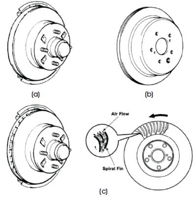 Figure 3. Types of Disc Brake Rotors (a) Solid Type, (b) Solid Type with Drum, and (c) Ventilated Type