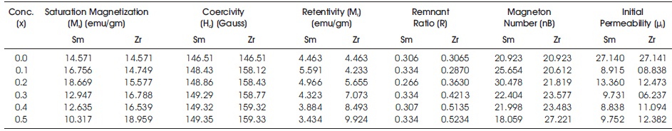 Table 1. Magnetic Parameters of Sm/Zr Substituted Mg-Mn Bulk Ferrites