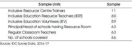 The descriptive exploratory survey design was employed in this study. As per design of the study, the evaluation of inclusive education was done in 12 districts i.e. Amritsar, Hoshiarpur, Jalandhar, Kapurthala, Faridkot, Fatehgarh Sahib, Fazilka, Mukatsar, Patiala, Ropar, and Ludhiana.