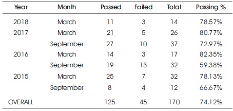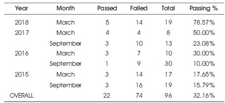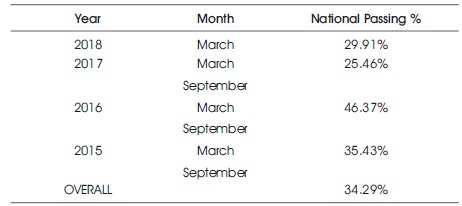 The data shows too that the lowest percentage of passers was during the September period of the year, where the group of newly graduated students is included or for the first time takers.