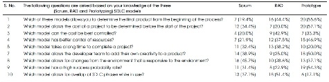From this, it can be drawn out that the usage of scrum SDLC model in the development of software is not much while prototype has the highest usage.
