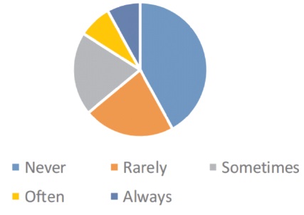 It can be seen that majority of the population are not familiar with SDLC models at all despite the advantages of following the SDLC phases for development. It can also be seen that majority of the respondent (42%) never use the SDLC models for the development of software and systems, 22% rarely use SDLC models, 20% use it sometimes, 8% often use it while only 8% always use the SDLC models for development of software or system.
