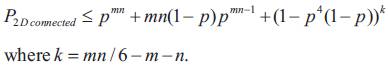 It has been shown in [27] that in a 2D m x n mesh, where m , n ≤ 3 if each node fails independently with a probability p> 0 then an upper bound on the probability that the 2D mesh is connected is given by: