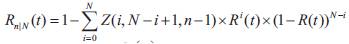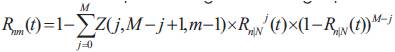 Step 2: In the second step, the reliability of at least m consecutive components is computed where each component is a functional row. A row is considered to be functional if at least n consecutive nodes are working (Step 1 above). The reliability of a row Rn/N(t) becomes the reliability of each of the M component in the vertical line. This can be computed using the following expression: