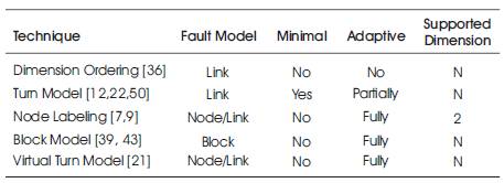 Table 2. Main properties of a number of fault-tolerant mesh routing techniques