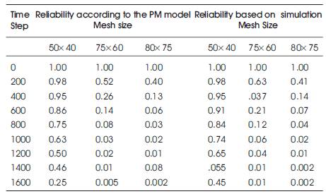 Table 5. Reliability Figures using PM model and simulation