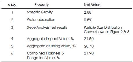 An igneous rock material consisting of granite was used as coarse aggregate in the Proportion of RCC. The grain Size distribution and other properties are shown in Table 3. The gradational requirements of combined aggregate were as per ACI 211.3R-02 [18]. Particle Size Distribution Curve for Coarse Aggregate and Combined Aggregate are shown in Figures 2 and 3.