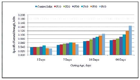 Figure 8. Flexural Specific Strength of pozzolanic effect of Fly ash