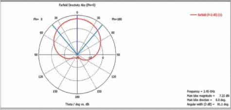 The antenna presented in Figure 3 operates at fundamental frequency of 2.42 GHz having -10 dB return loss as shown in Figure 4. Figure 5 and 6 shows VSWR and radiation characteristics of the presented antenna respectively along E plane at the fundamental frequency of 2.42 GHz.